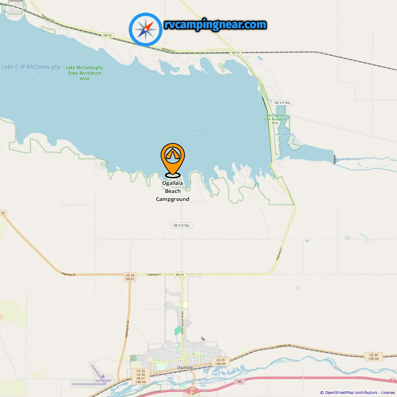 Location of Ogallala Beach Campground