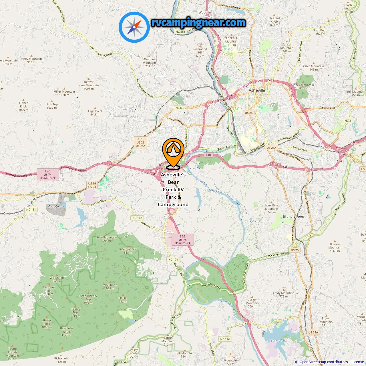 Location of Asheville's Bear Creek RV Park & Campground