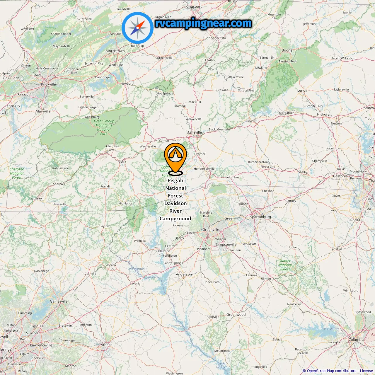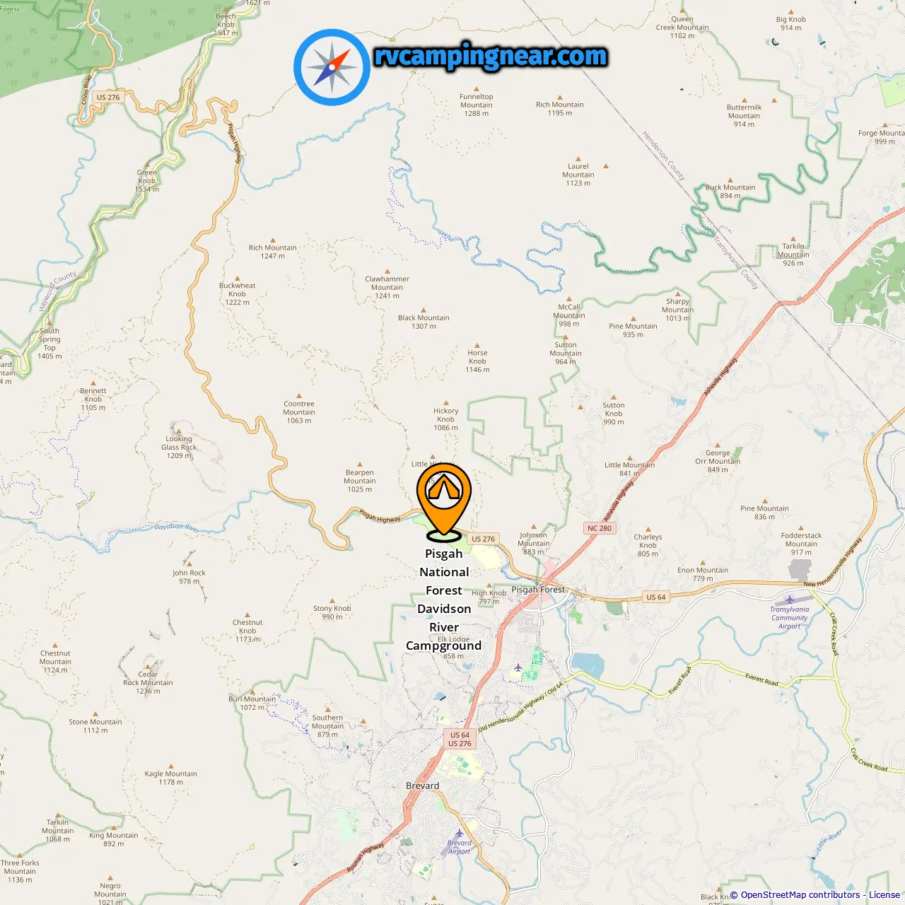 Location of Pisgah National Forest Davidson River Campground