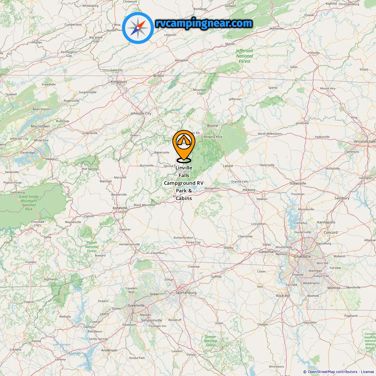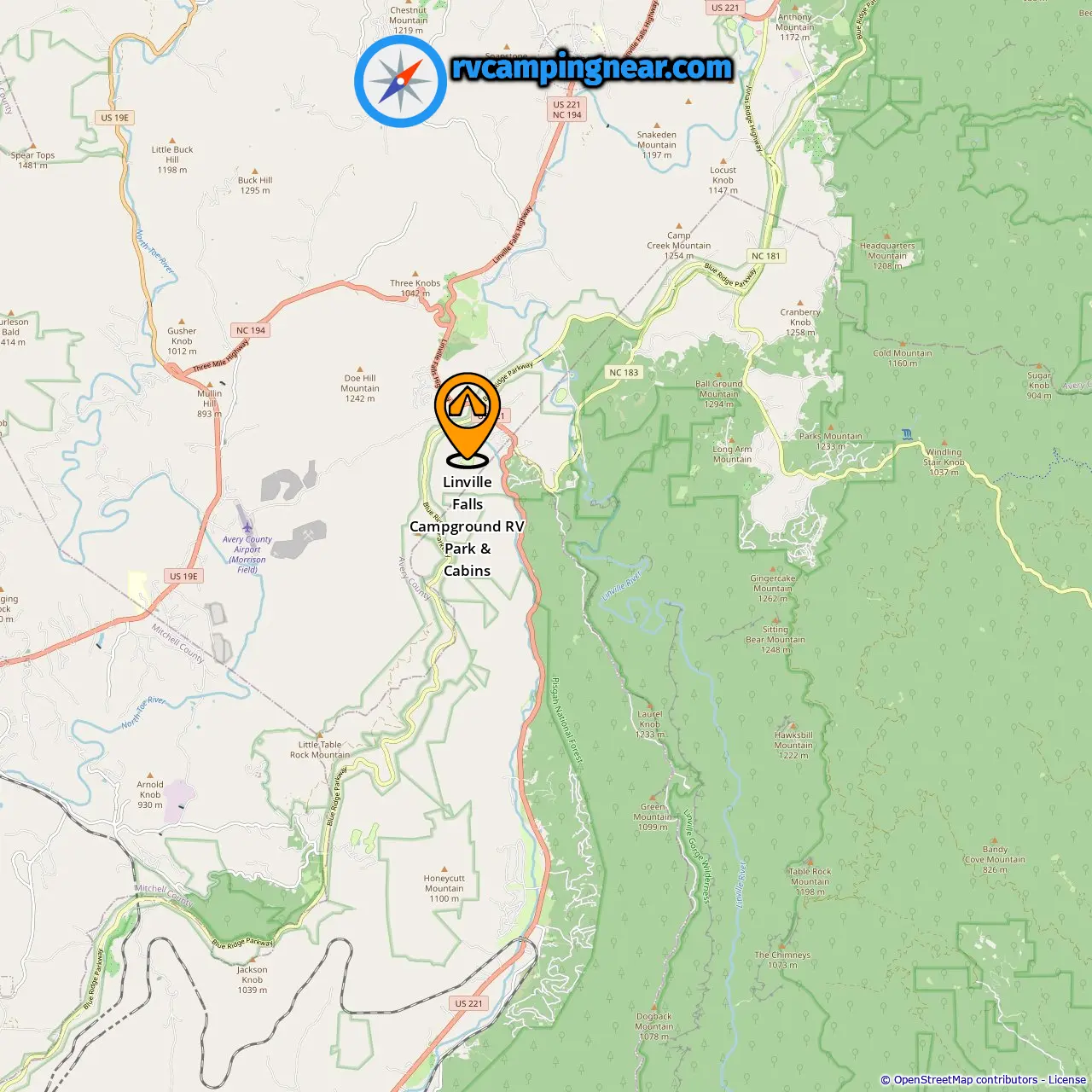 Location of Linville Falls Campground RV Park & Cabins