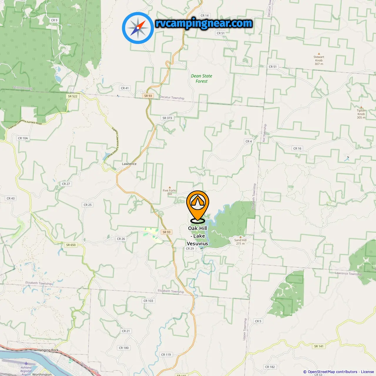 Location of Oak Hill - Lake Vesuvius
