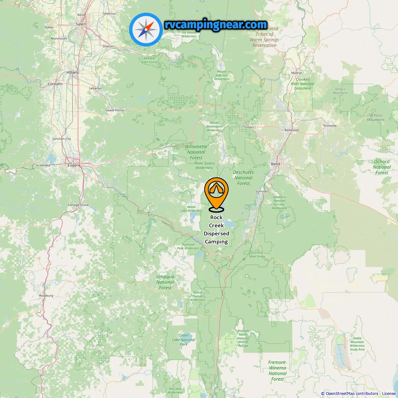 Location of Rock Creek Dispersed Camping