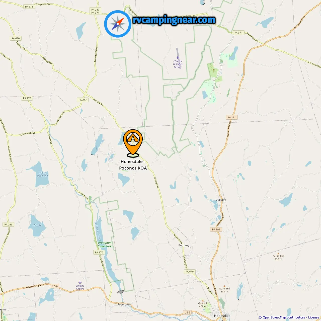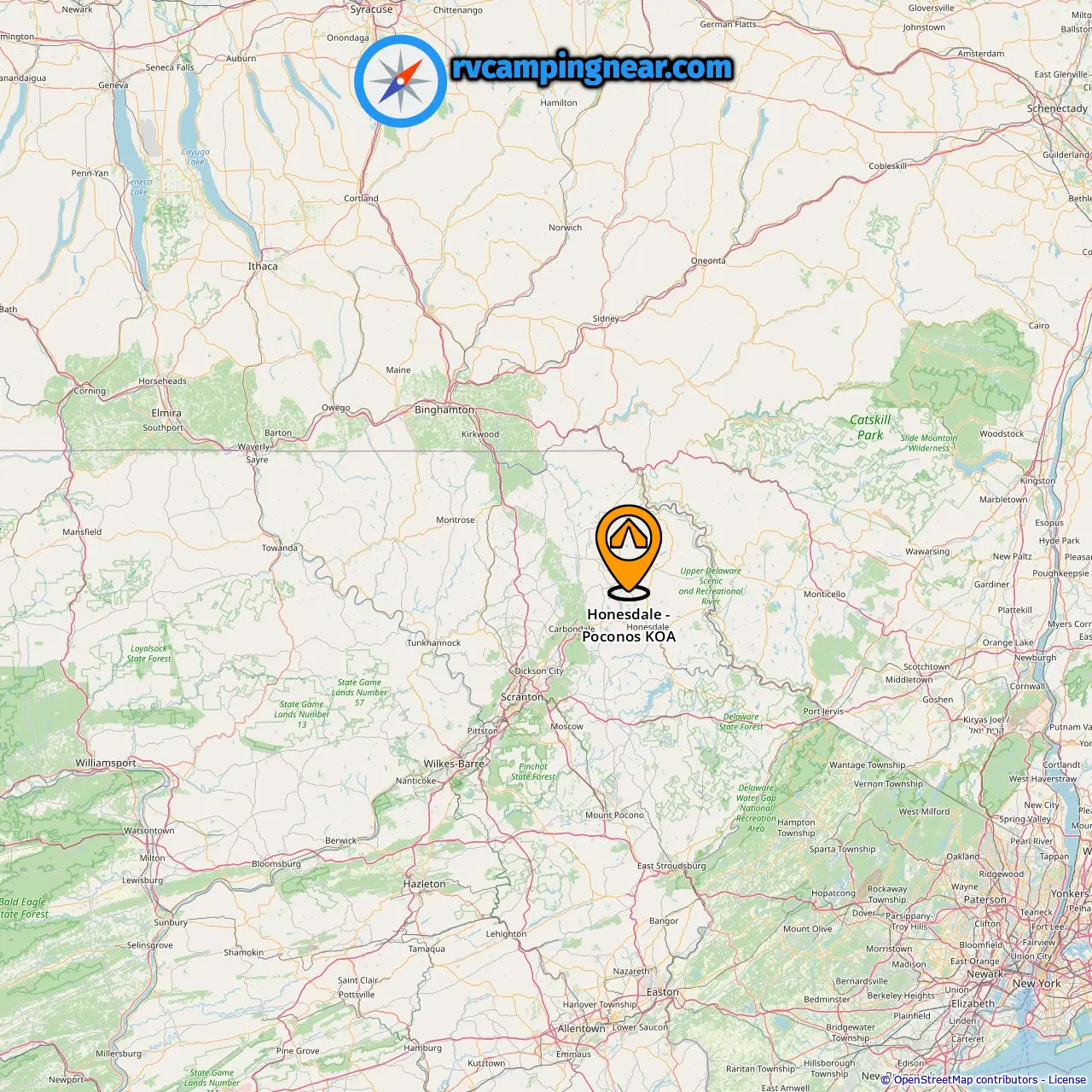 Location of Honesdale - Poconos KOA