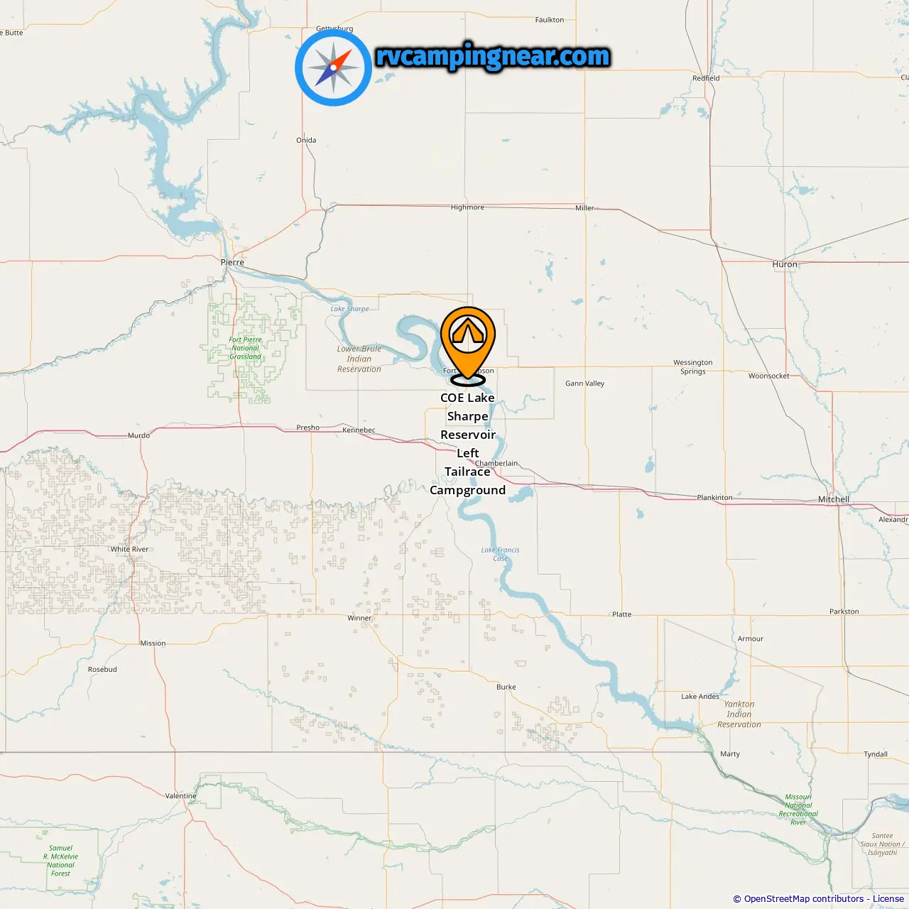 Location of COE Lake Sharpe Reservoir Left Tailrace Campground