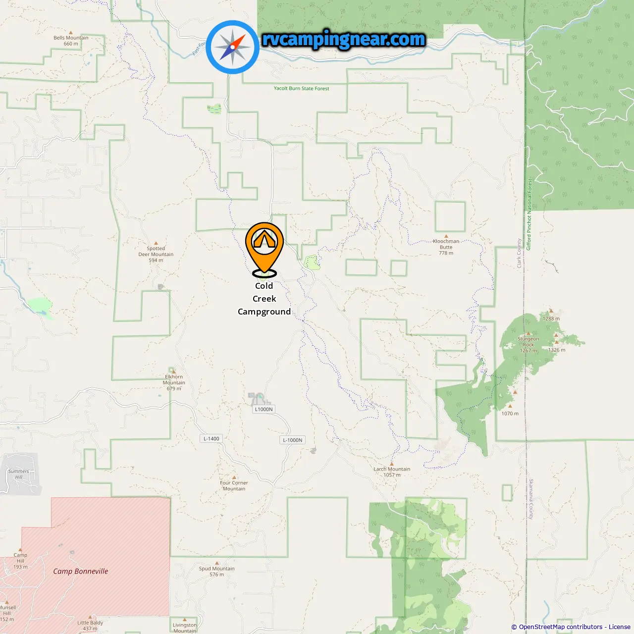 Location of Cold Creek Campground