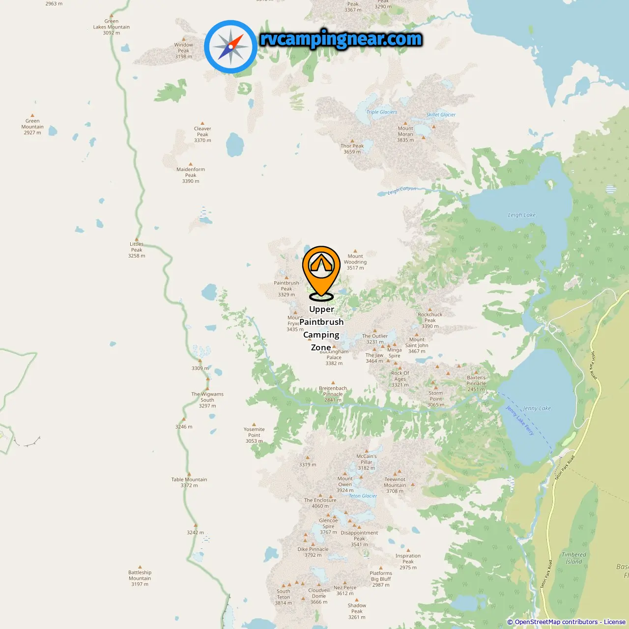 Location of Upper Paintbrush Camping Zone