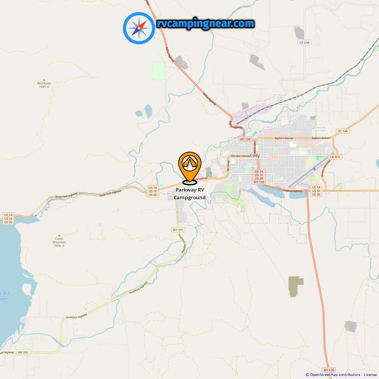 Distance from the campground to Cody: 2.52 mi