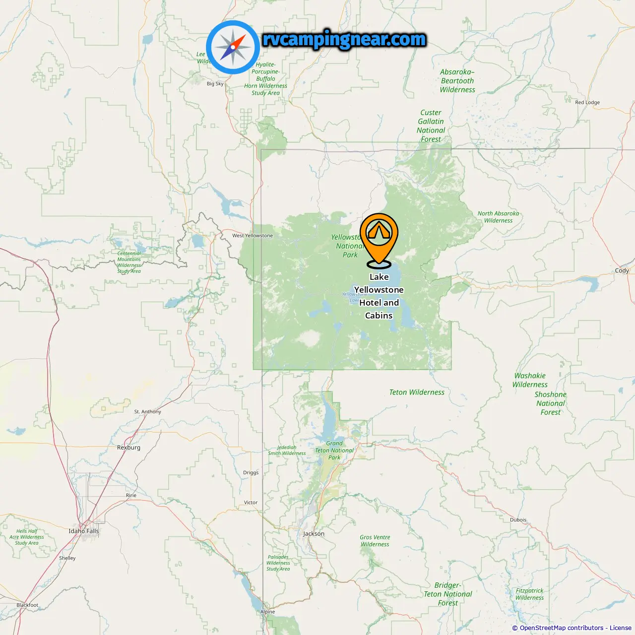 Location of Lake Yellowstone Hotel and Cabins
