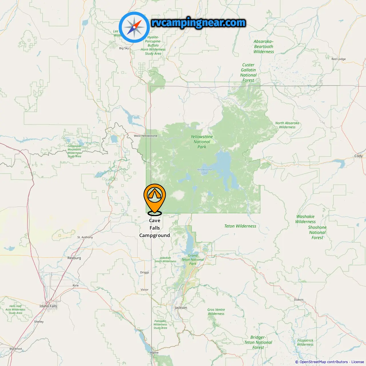 Location of Cave Falls Campground