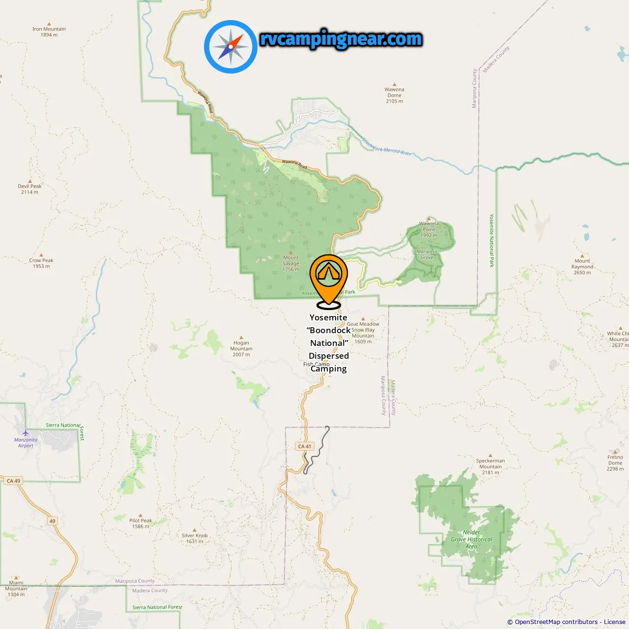 Ubicación de Yosemite “Boondock National” Dispersed Camping