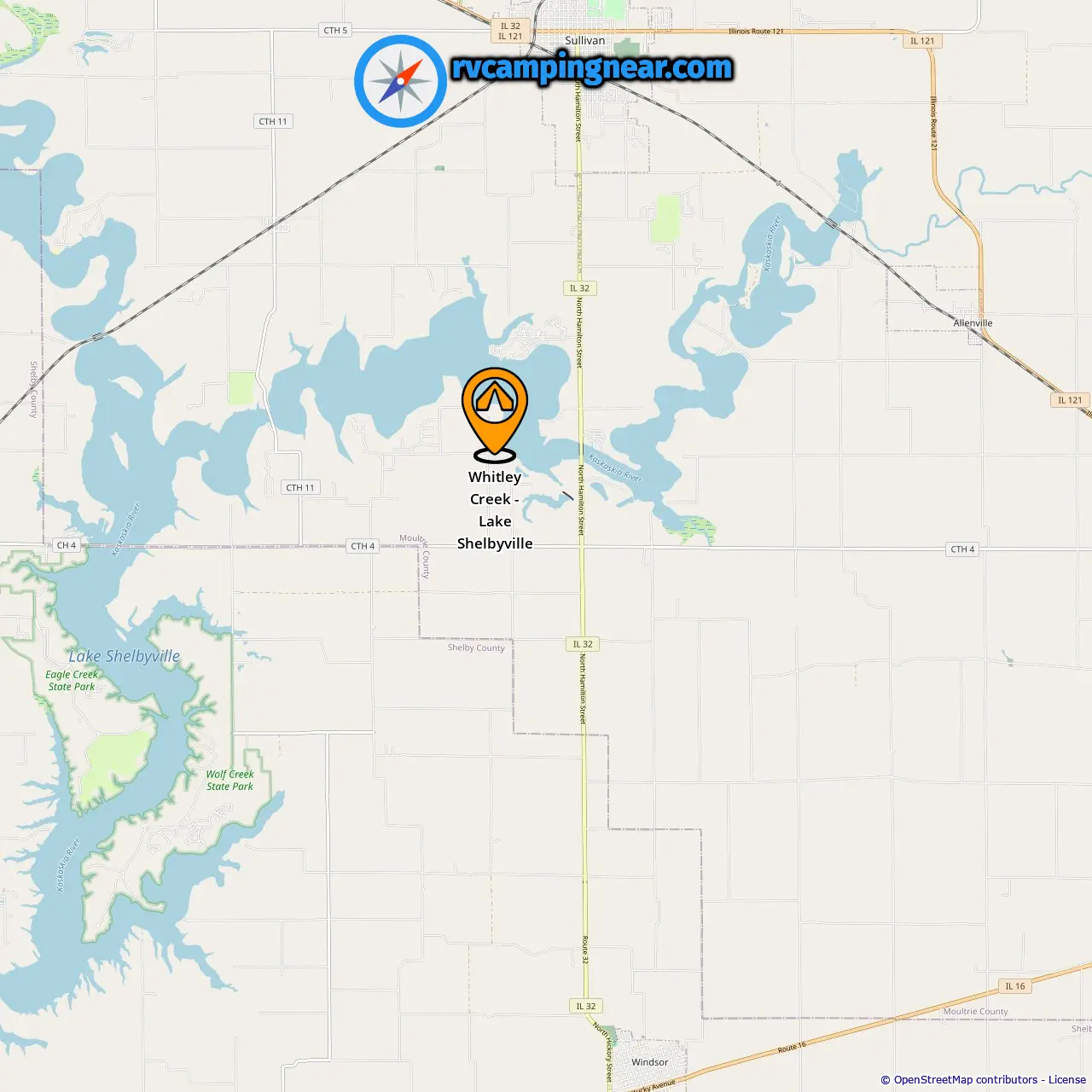 Ubicación de Whitley Creek - Lake Shelbyville