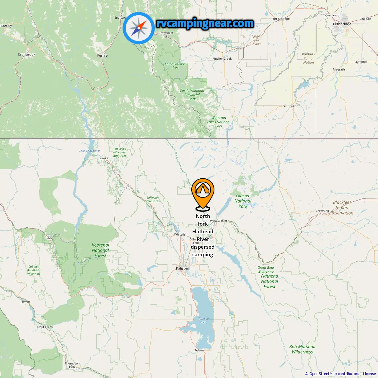 Ubicación de North fork Flathead River dispersed camping