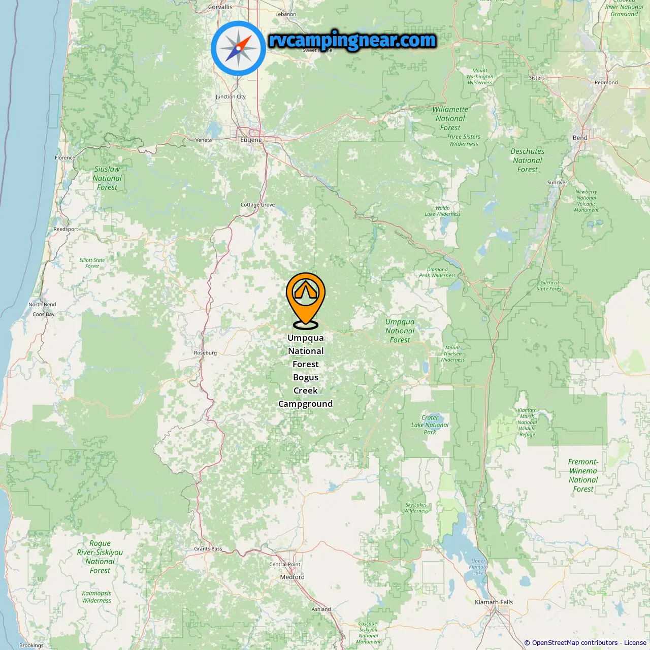 Ubicación de Umpqua National Forest Bogus Creek Campground