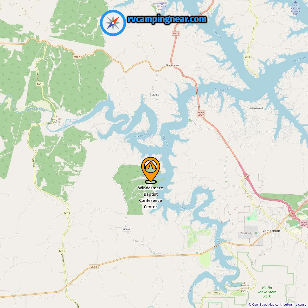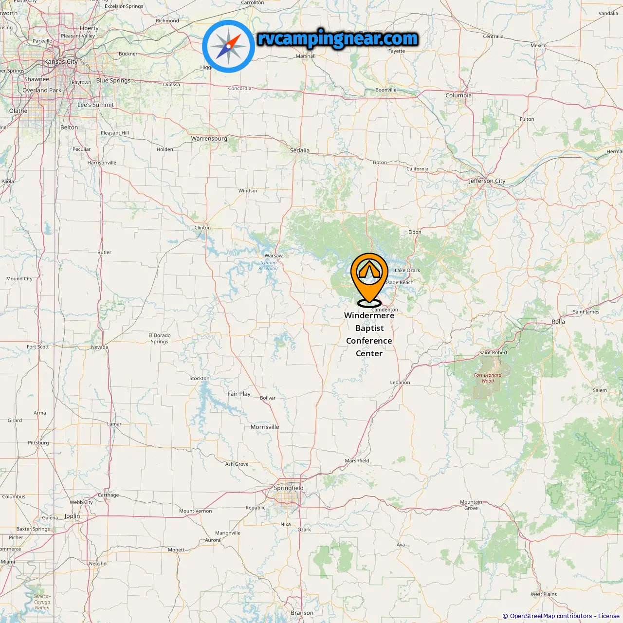 Distancia desde el camping hasta Camdenton: 9.63 mi