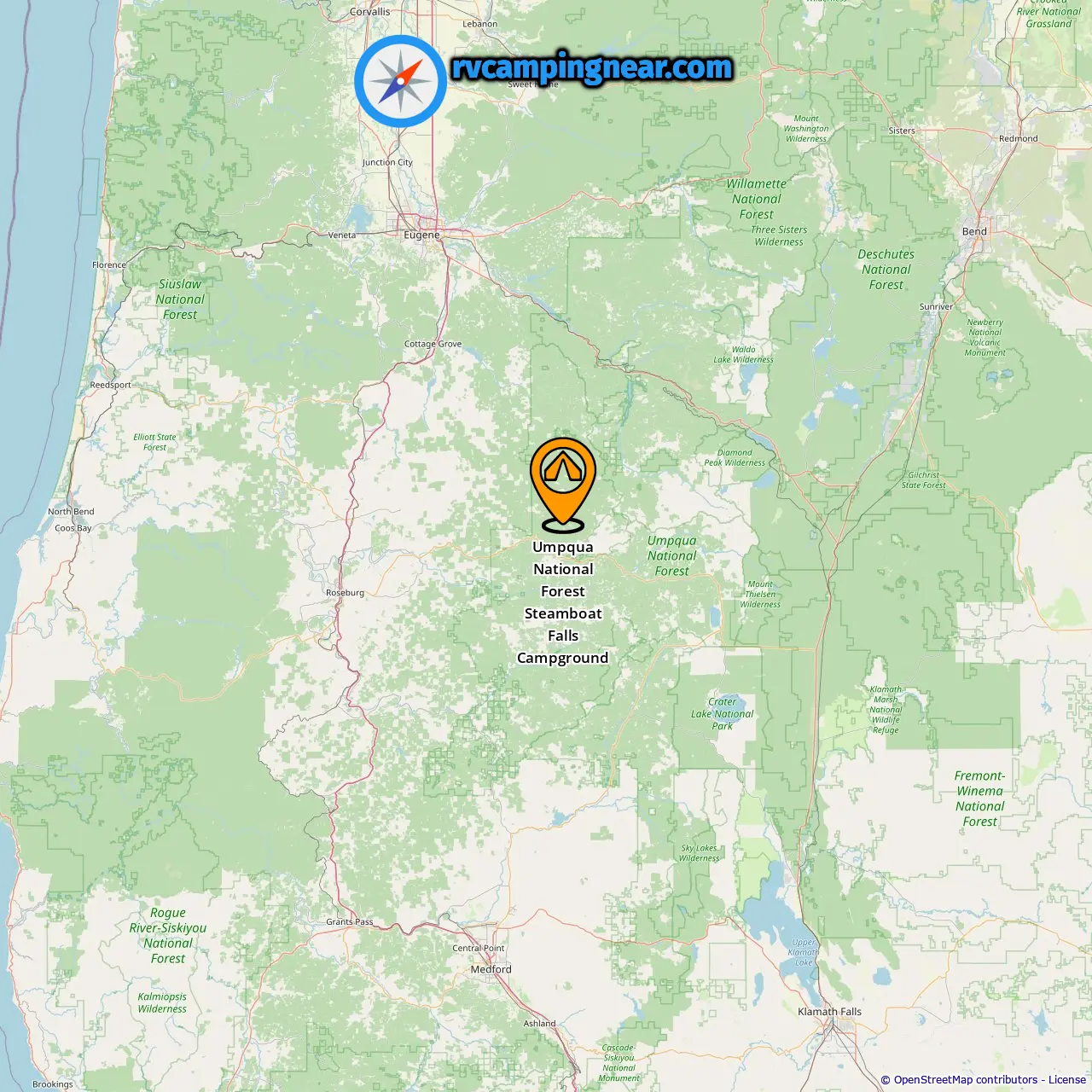 Ubicación de Umpqua National Forest Steamboat Falls Campground