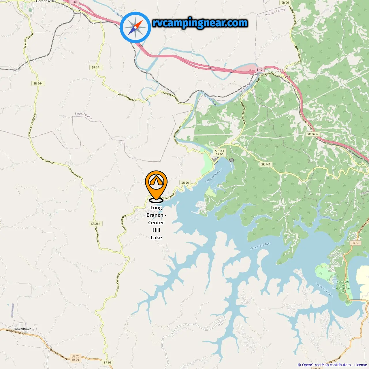 Emplacement de Long Branch - Center Hill Lake
