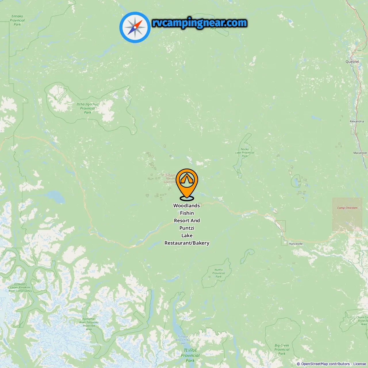 Locatie van Woodlands Fishin Resort And Puntzi Lake Restaurant/Bakery