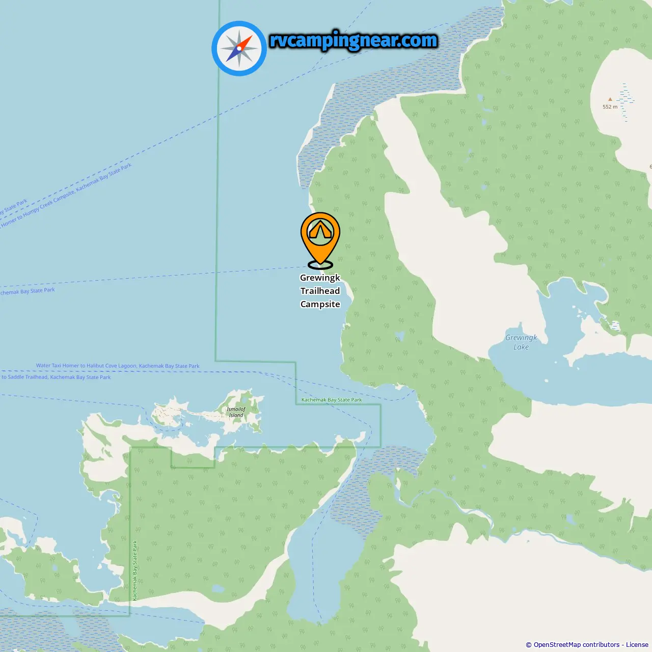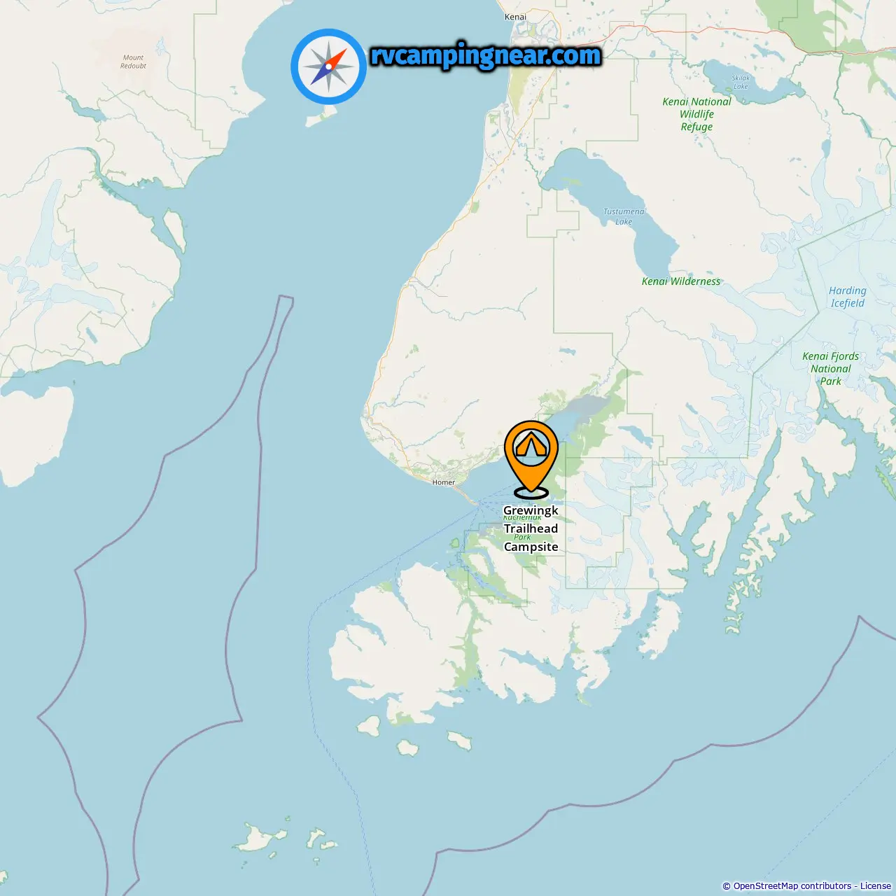 Locatie van Grewingk Trailhead Campsite