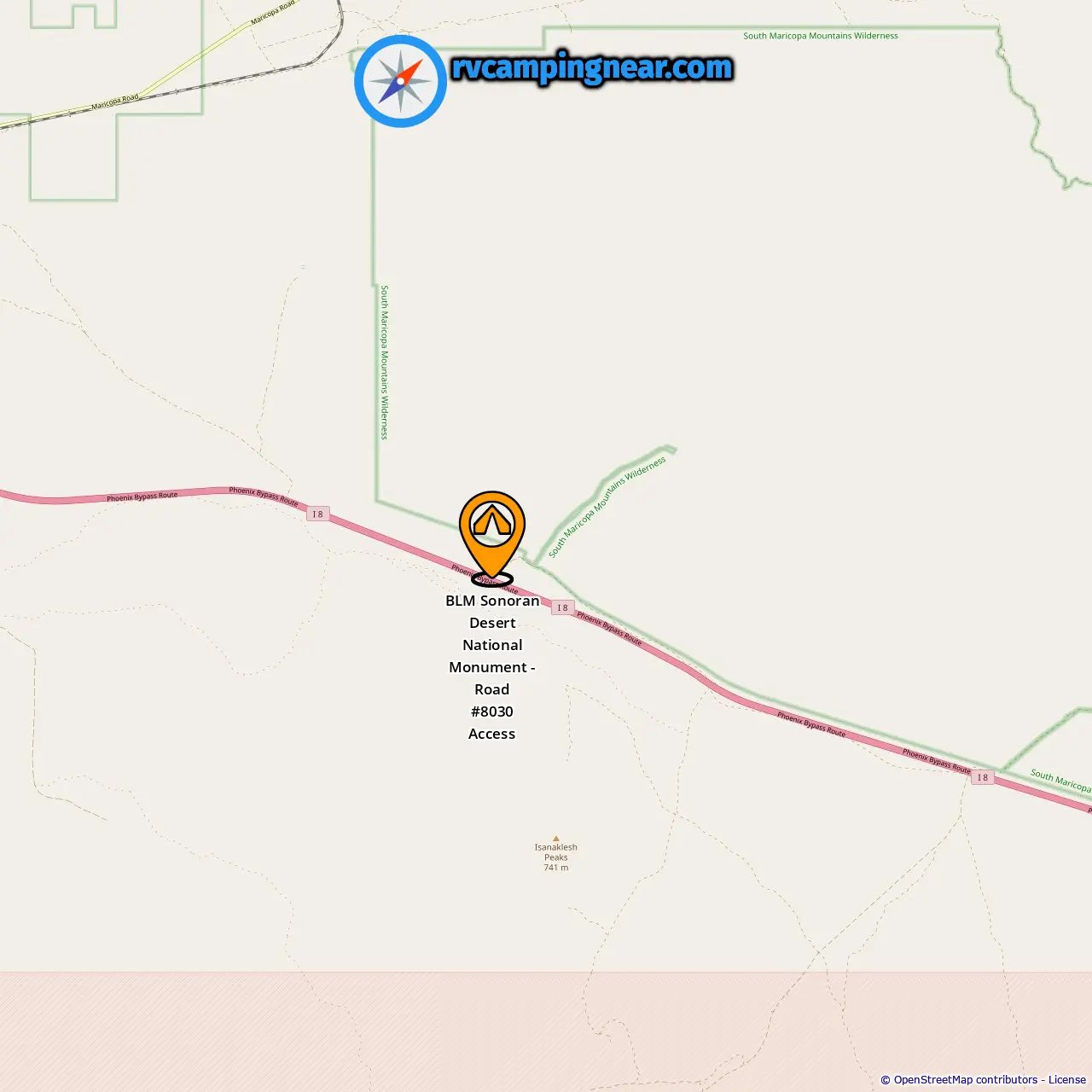 Locatie van BLM Sonoran Desert National Monument - Road #8030 Access