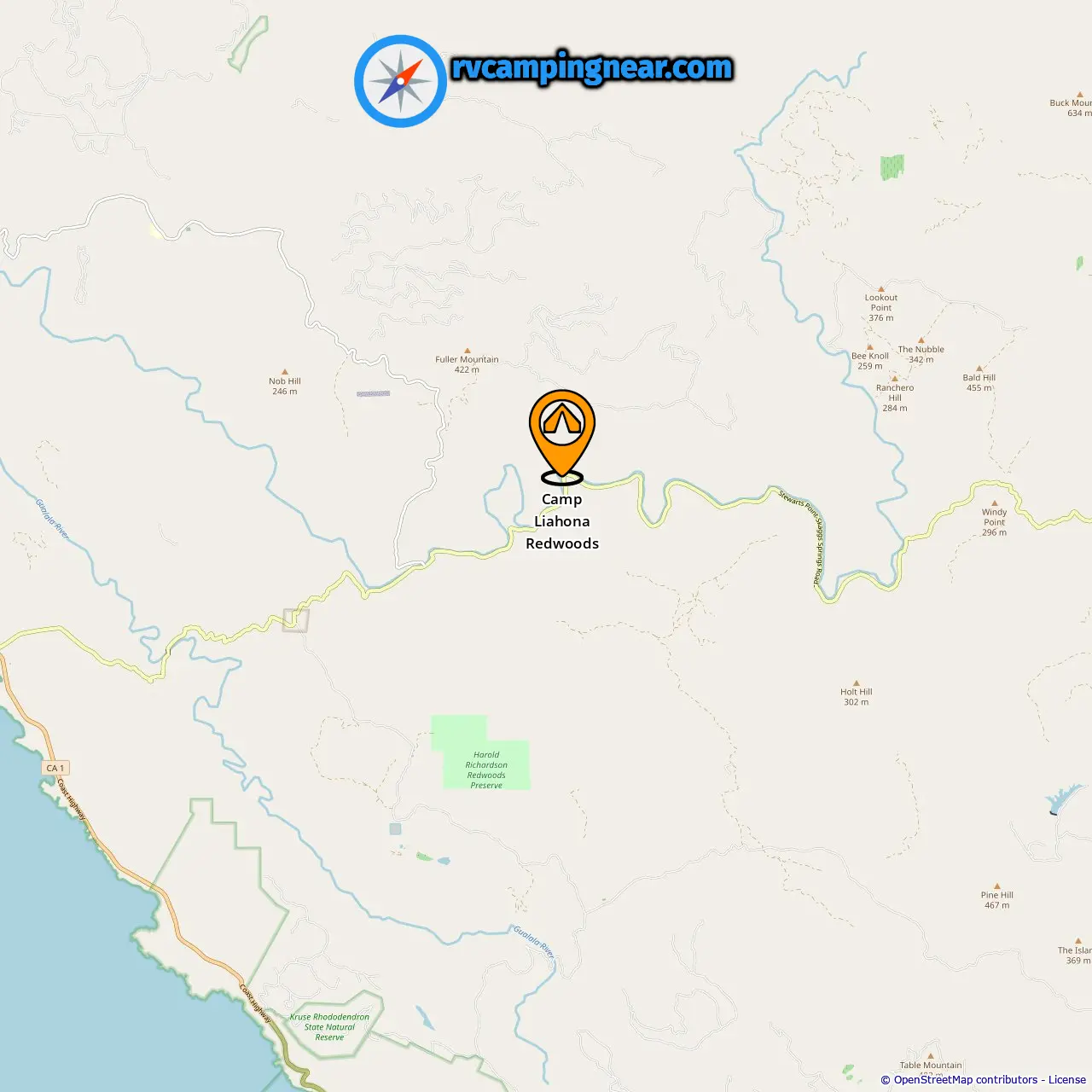 Locatie van Camp Liahona Redwoods