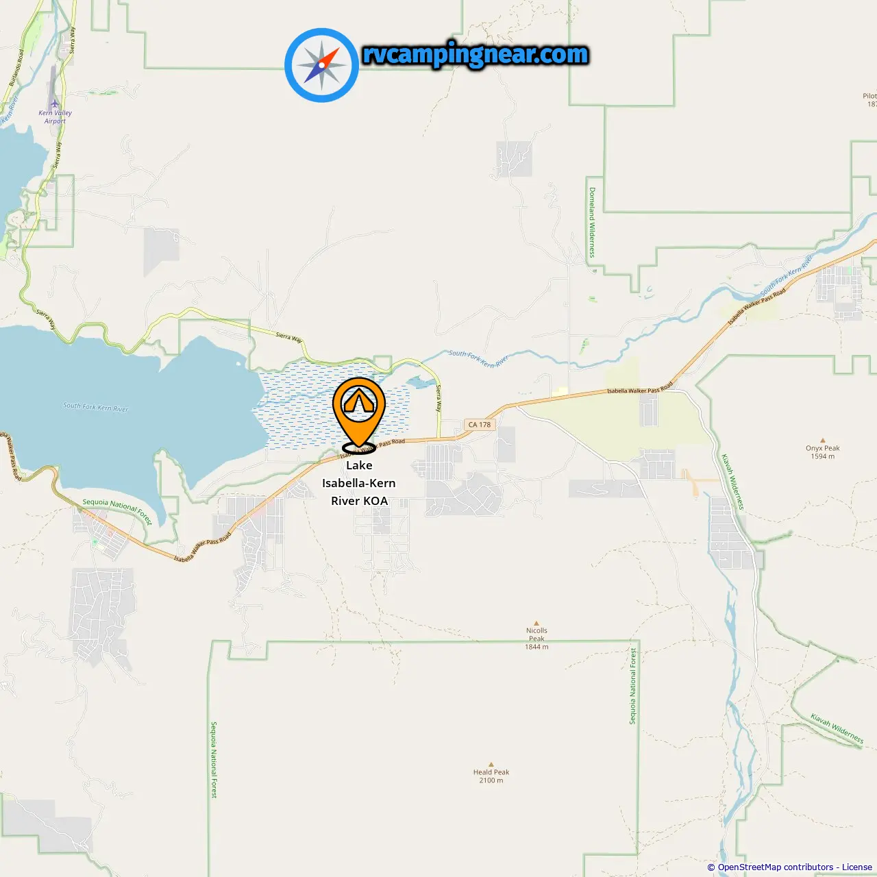 Locatie van Lake Isabella-Kern River KOA