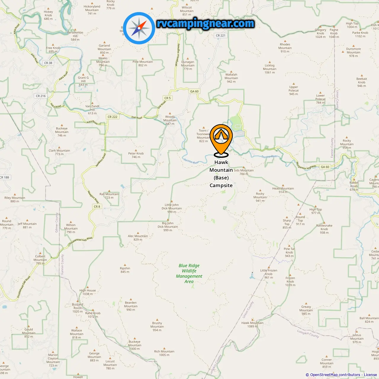 Locatie van Hawk Mountain (Base) Campsite
