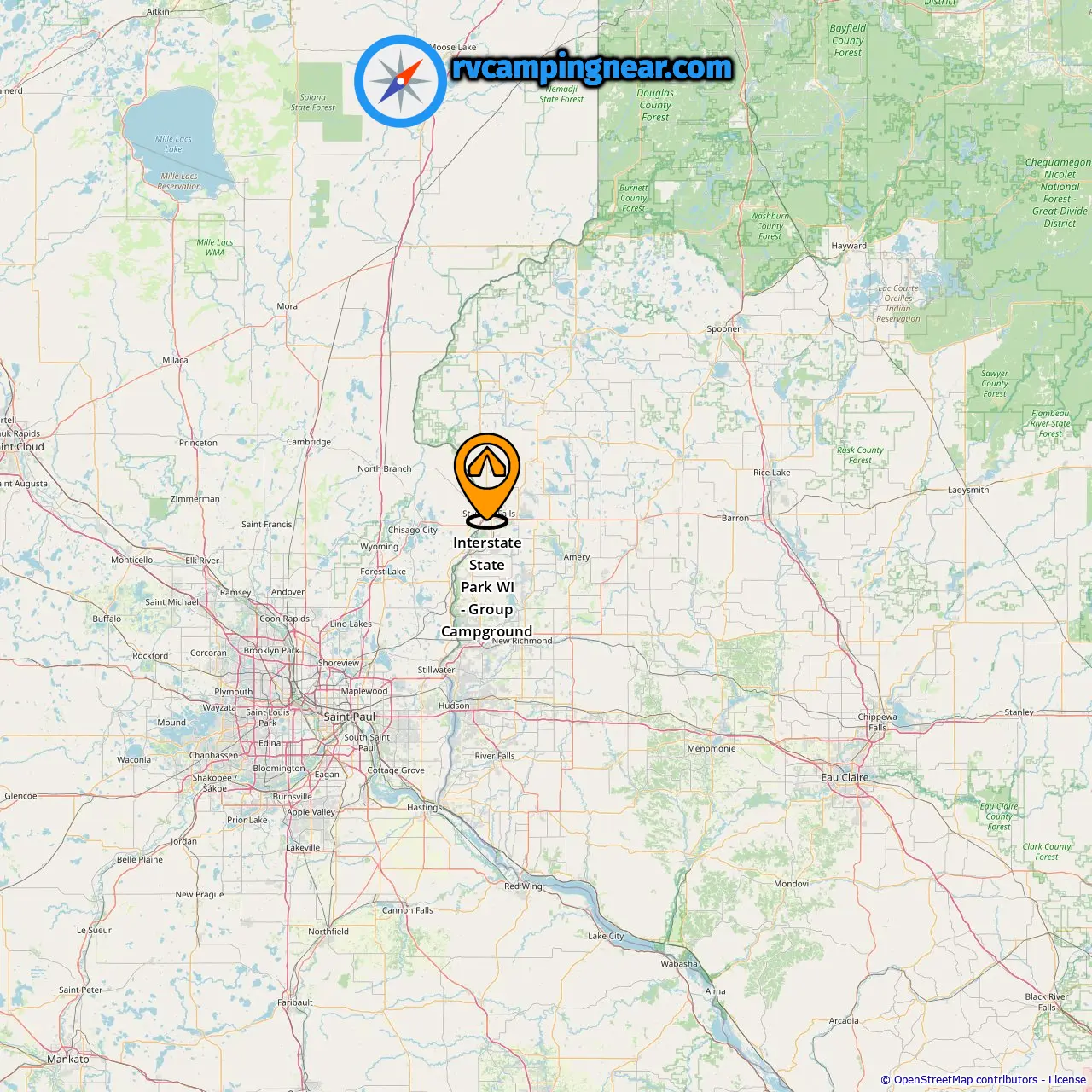 Locatie van Interstate State Park WI - Group Campground
