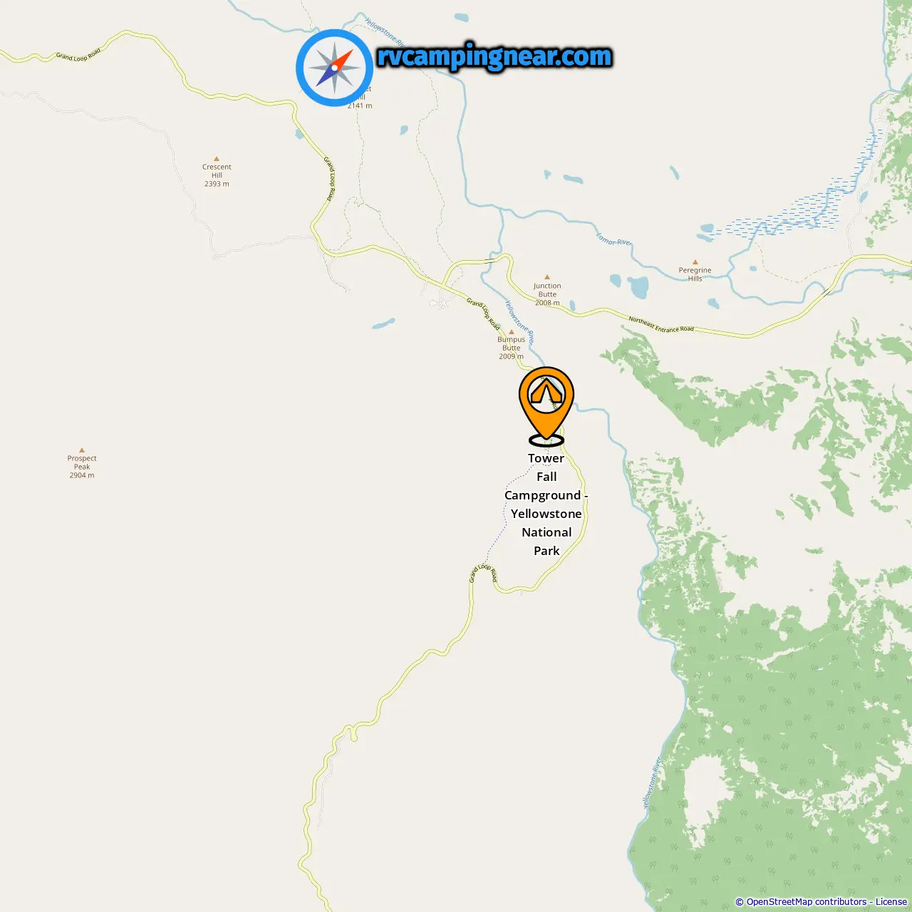 Locatie van Tower Fall Campground - Yellowstone National Park
