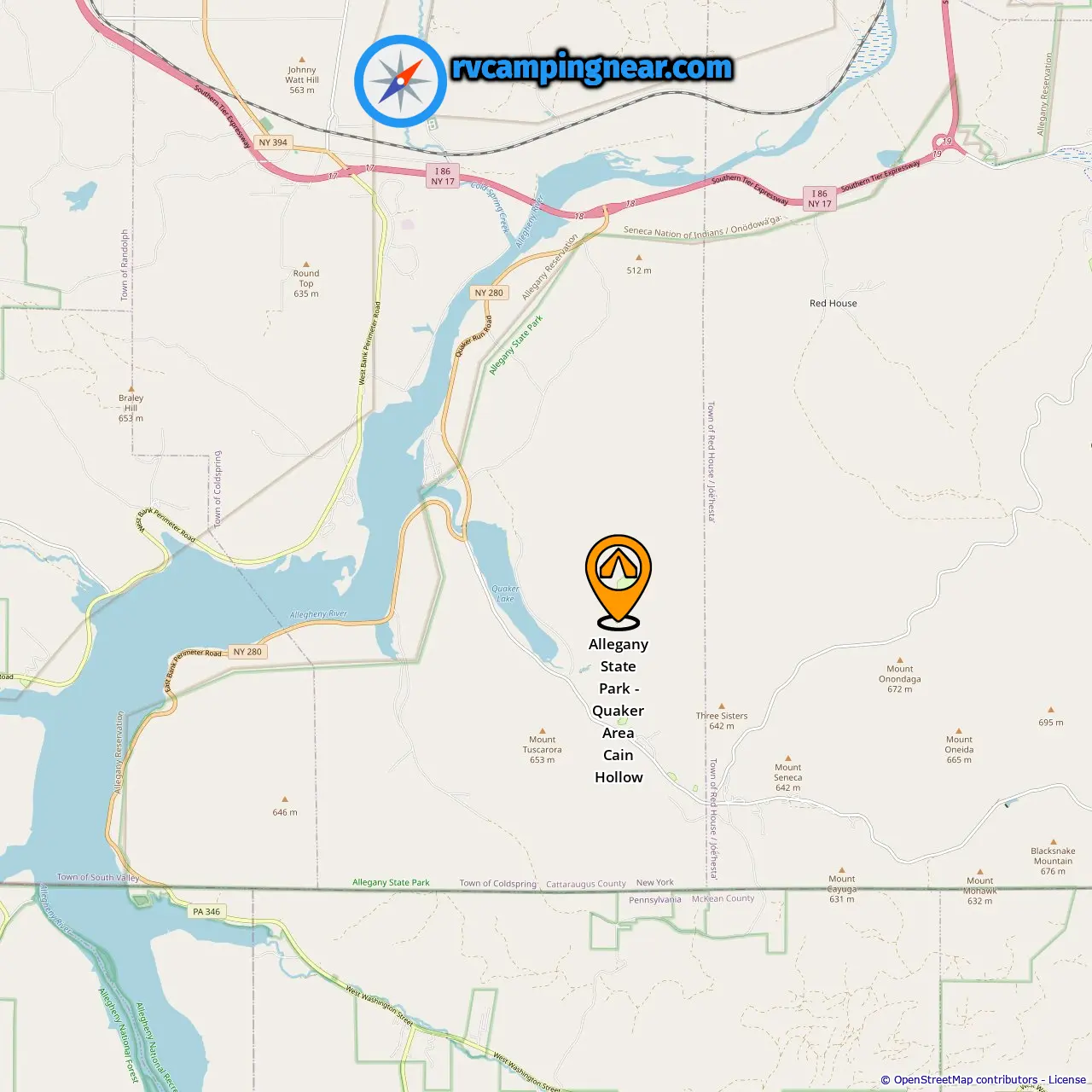 Locatie van Allegany State Park - Quaker Area Cain Hollow