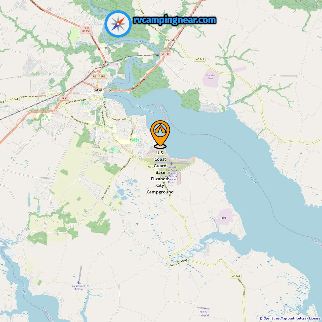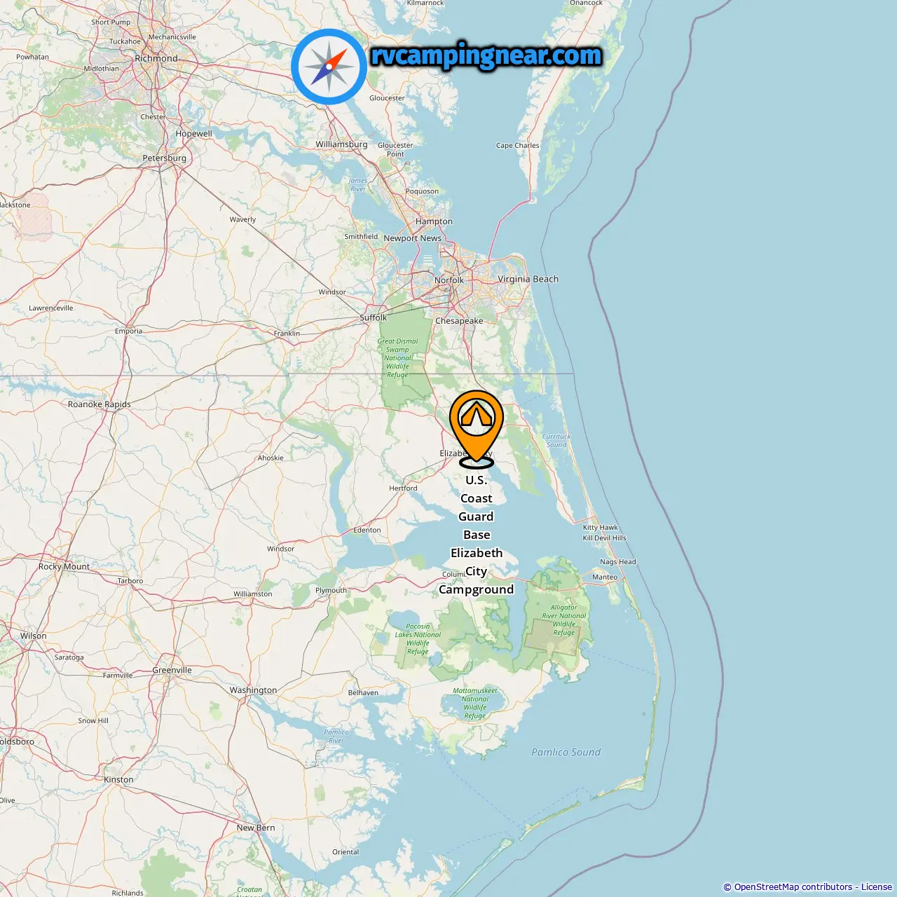 Locatie van U.S. Coast Guard Base Elizabeth City Campground