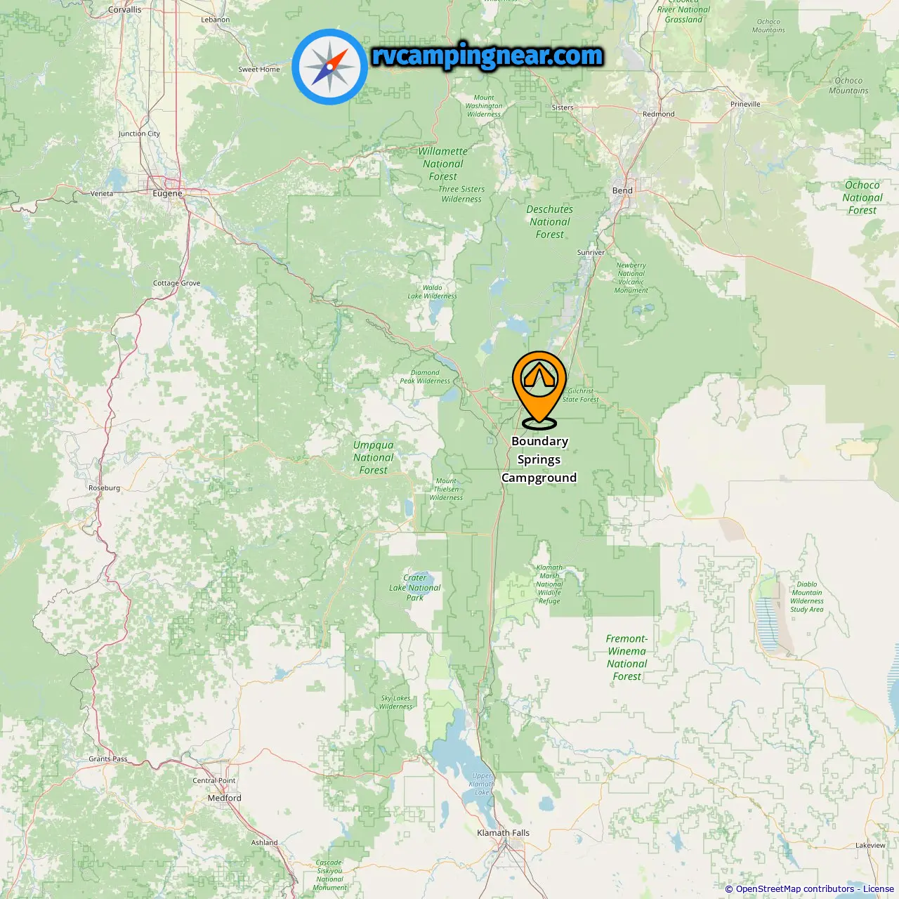 Locatie van Boundary Springs Campground