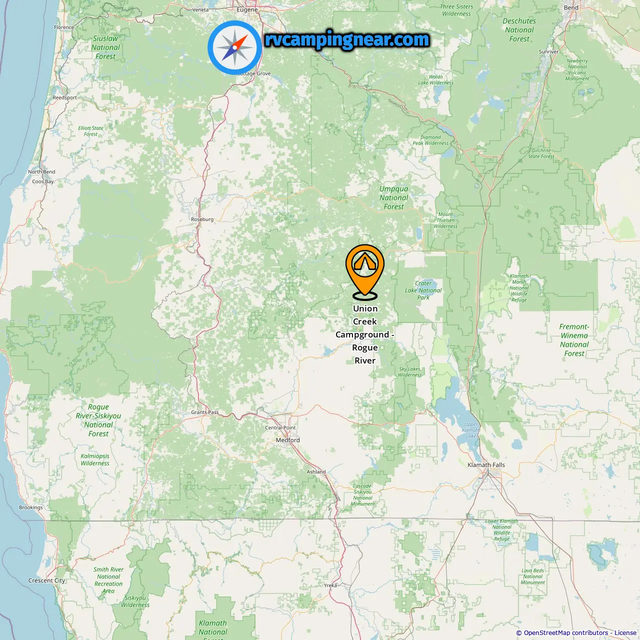 Locatie van Union Creek Campground - Rogue River
