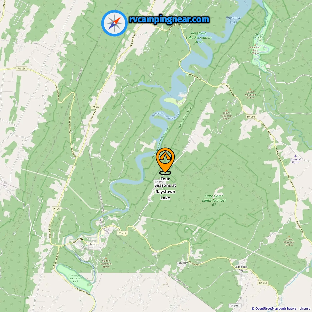 Locatie van Four Seasons at Raystown Lake