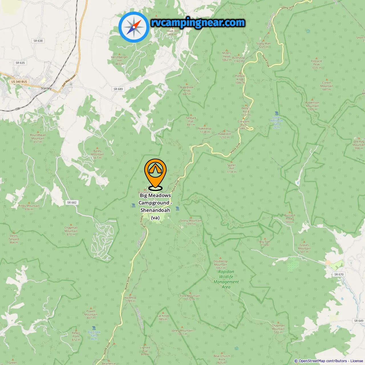 Locatie van Big Meadows Campground - Shenandoah (va)