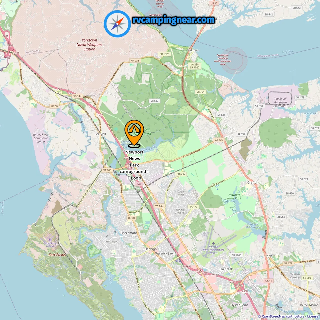 Locatie van Newport News Park campground - F Loop
