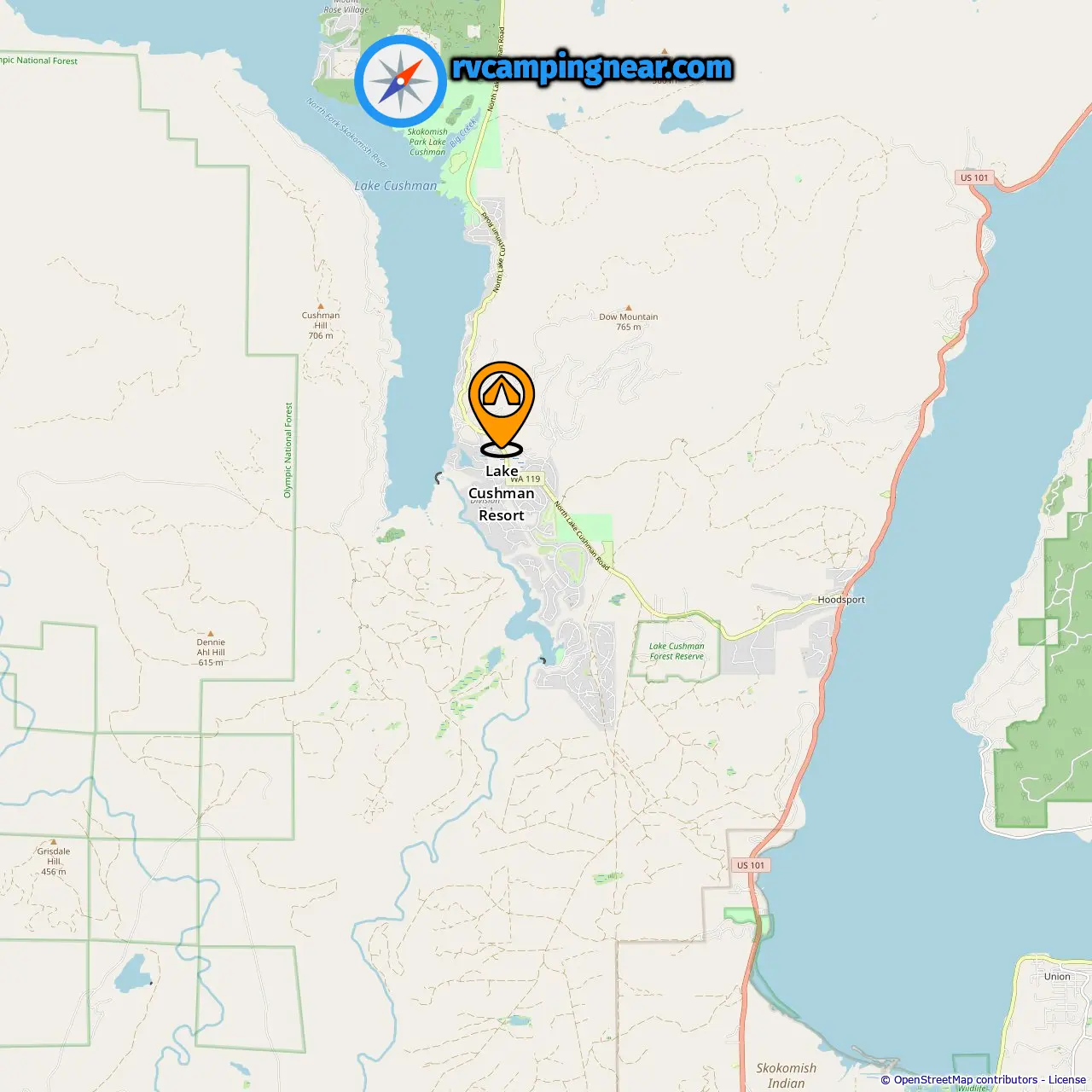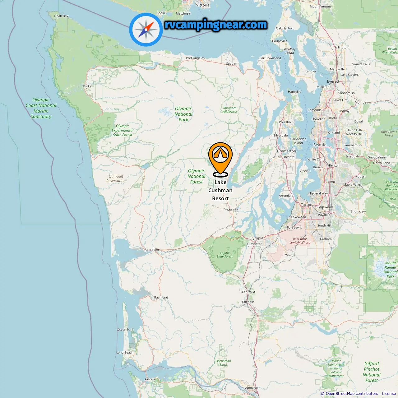 Locatie van Lake Cushman Resort