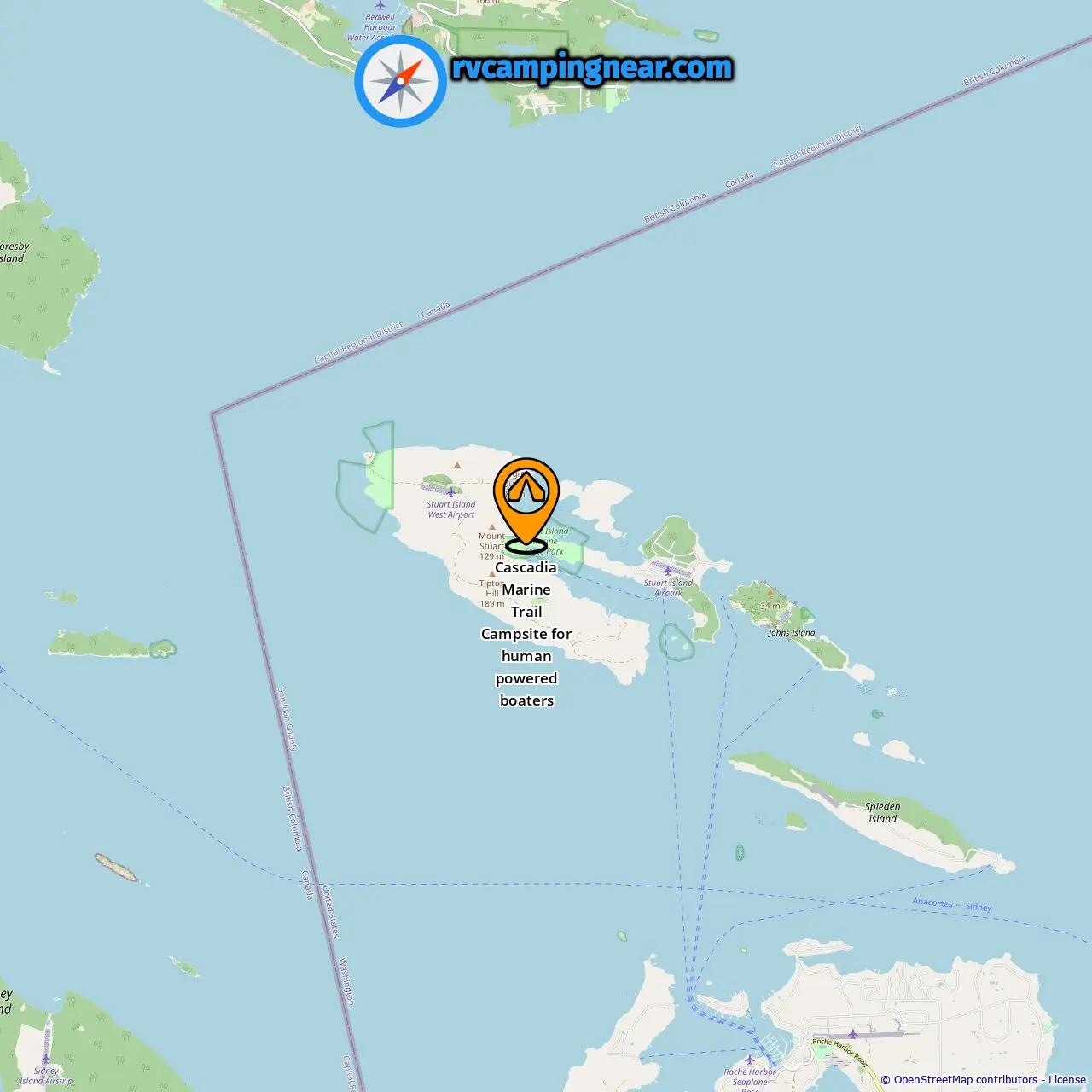 Locatie van Cascadia Marine Trail Campsite for human powered boaters