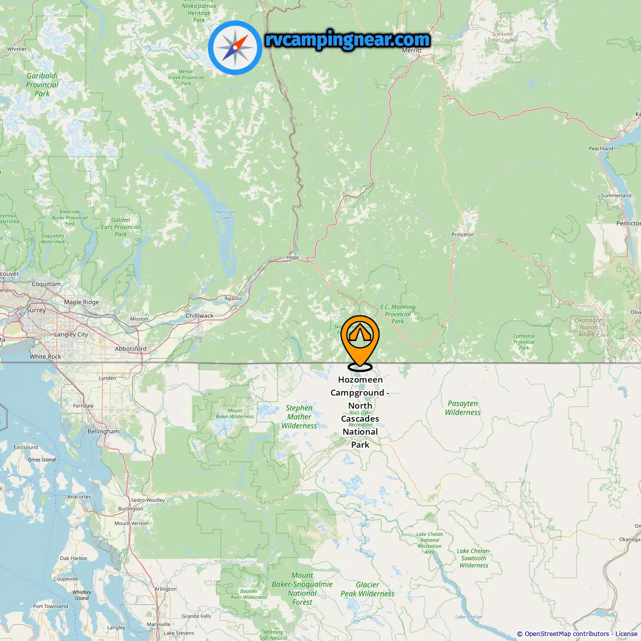 Locatie van Hozomeen Campground - North Cascades National Park