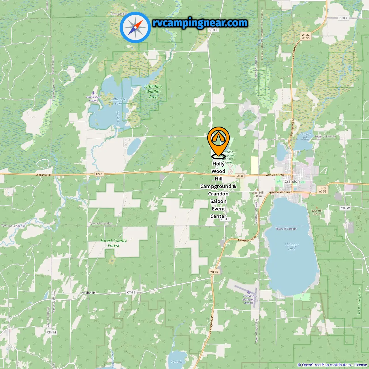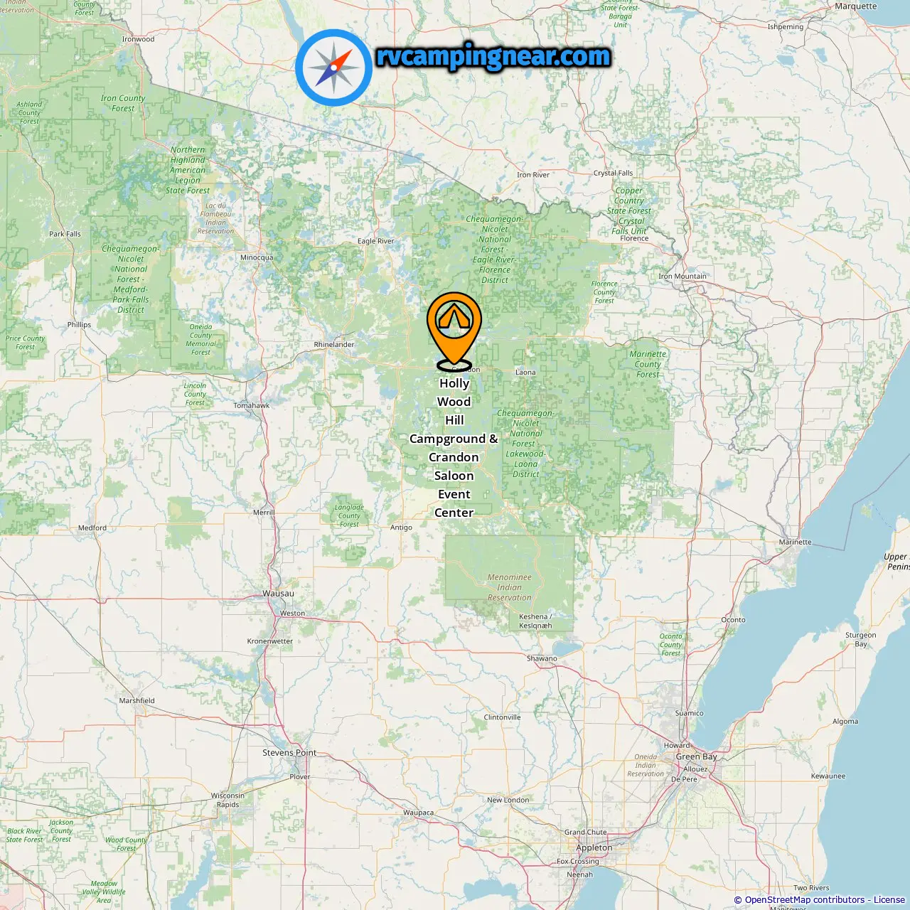 Locatie van Holly Wood Hill Campground & Crandon Saloon Event Center