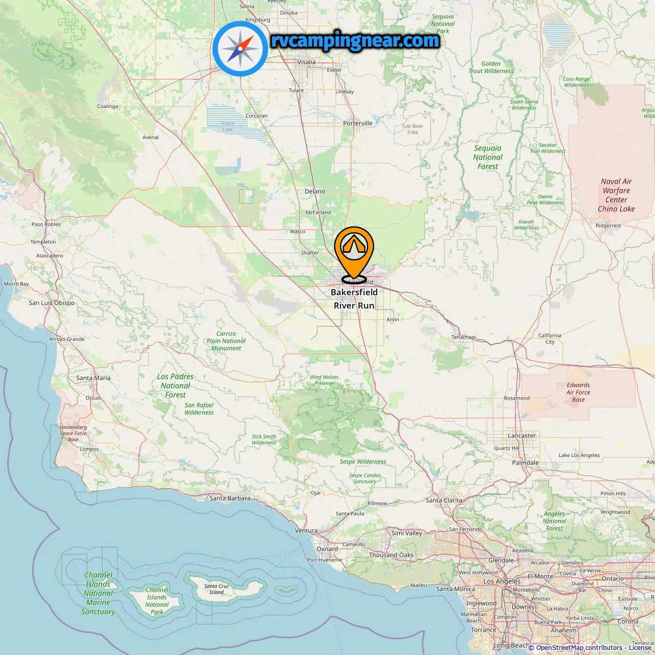 Znajdź pola kempingowe w tych miastach niedaleko Bakersfield