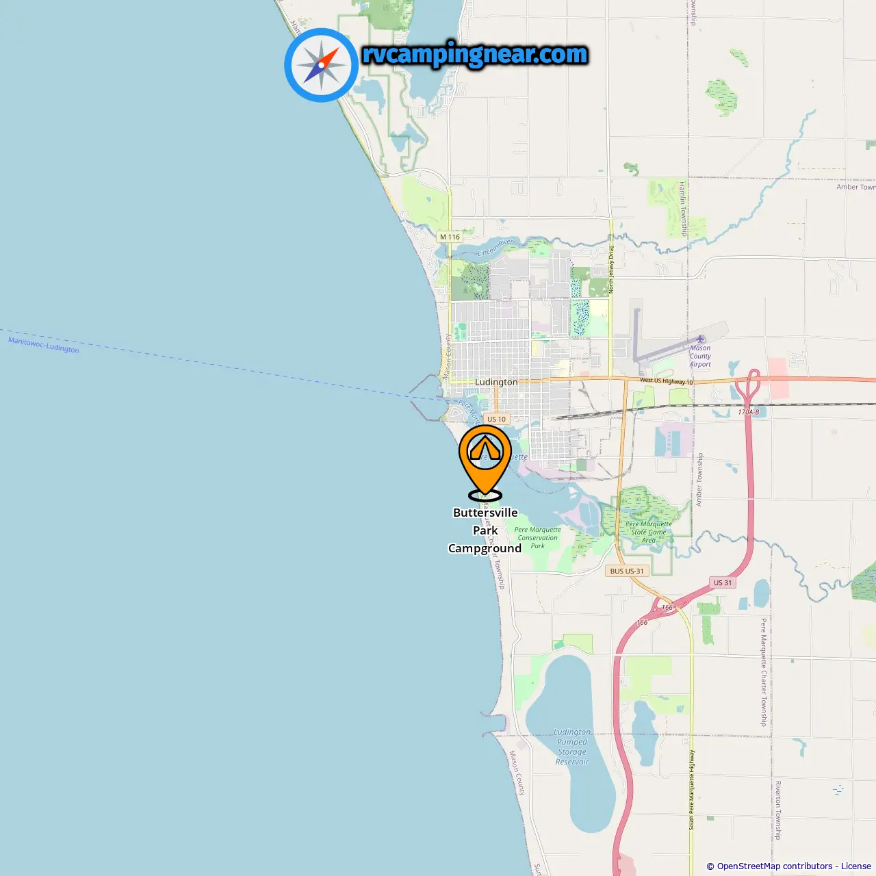 Odległość od pola kempingowego do Ludington: 6.58 mi