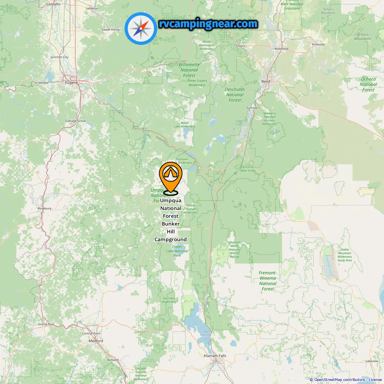 Lokalizacja Umpqua National Forest Bunker Hill Campground