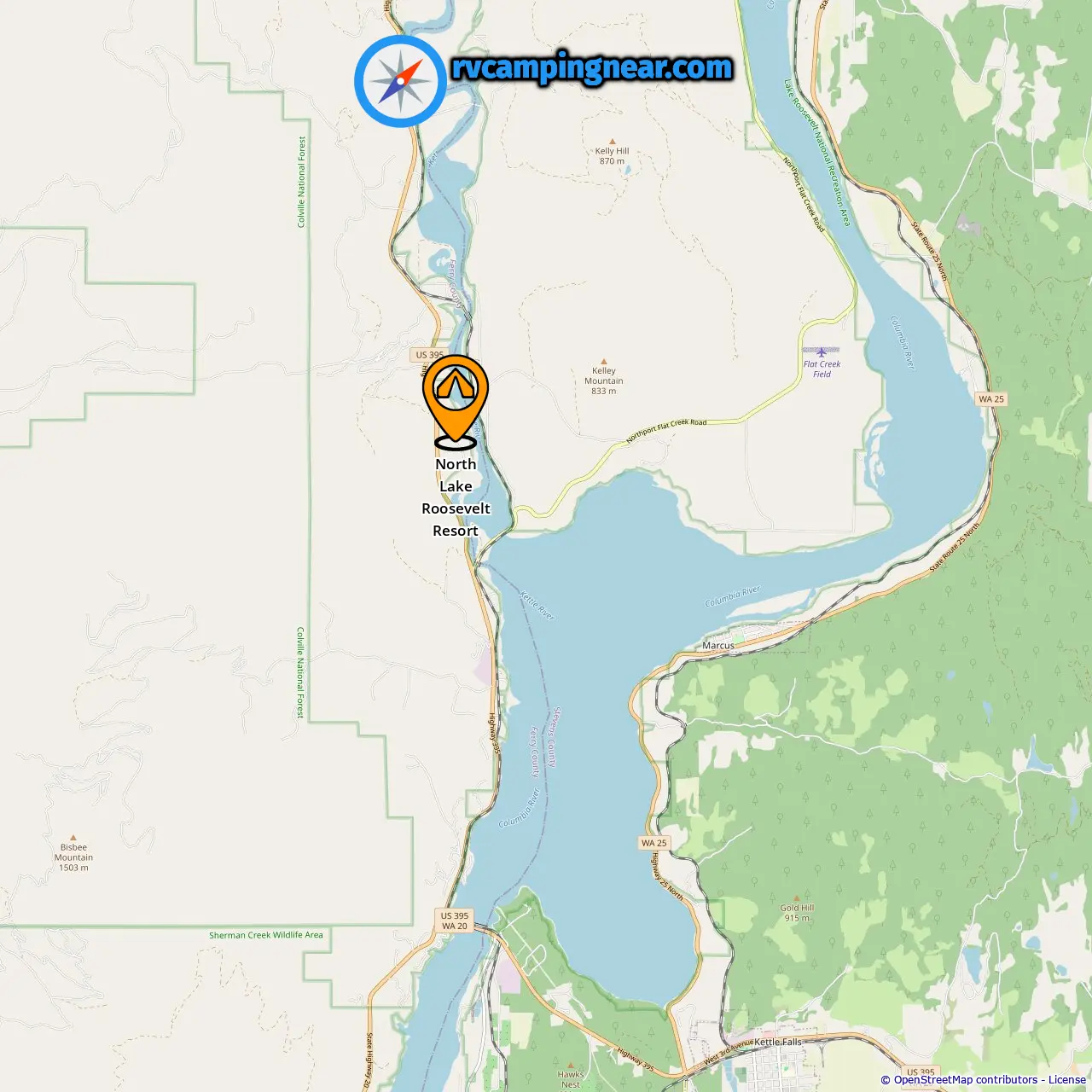 Lokalizacja North Lake Roosevelt Resort