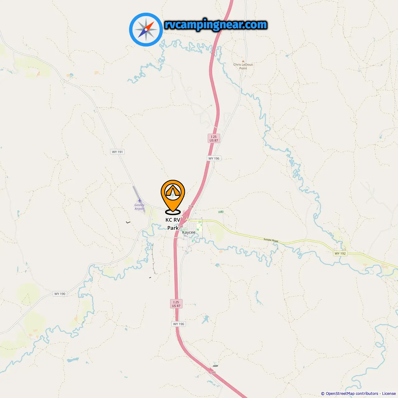Odległość od pola kempingowego do Kaycee: 0.86 mi