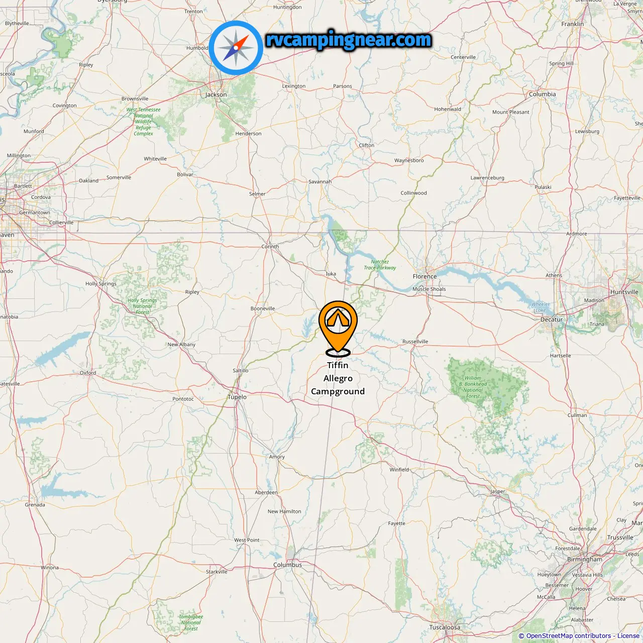 Localização de Tiffin Allegro Campground