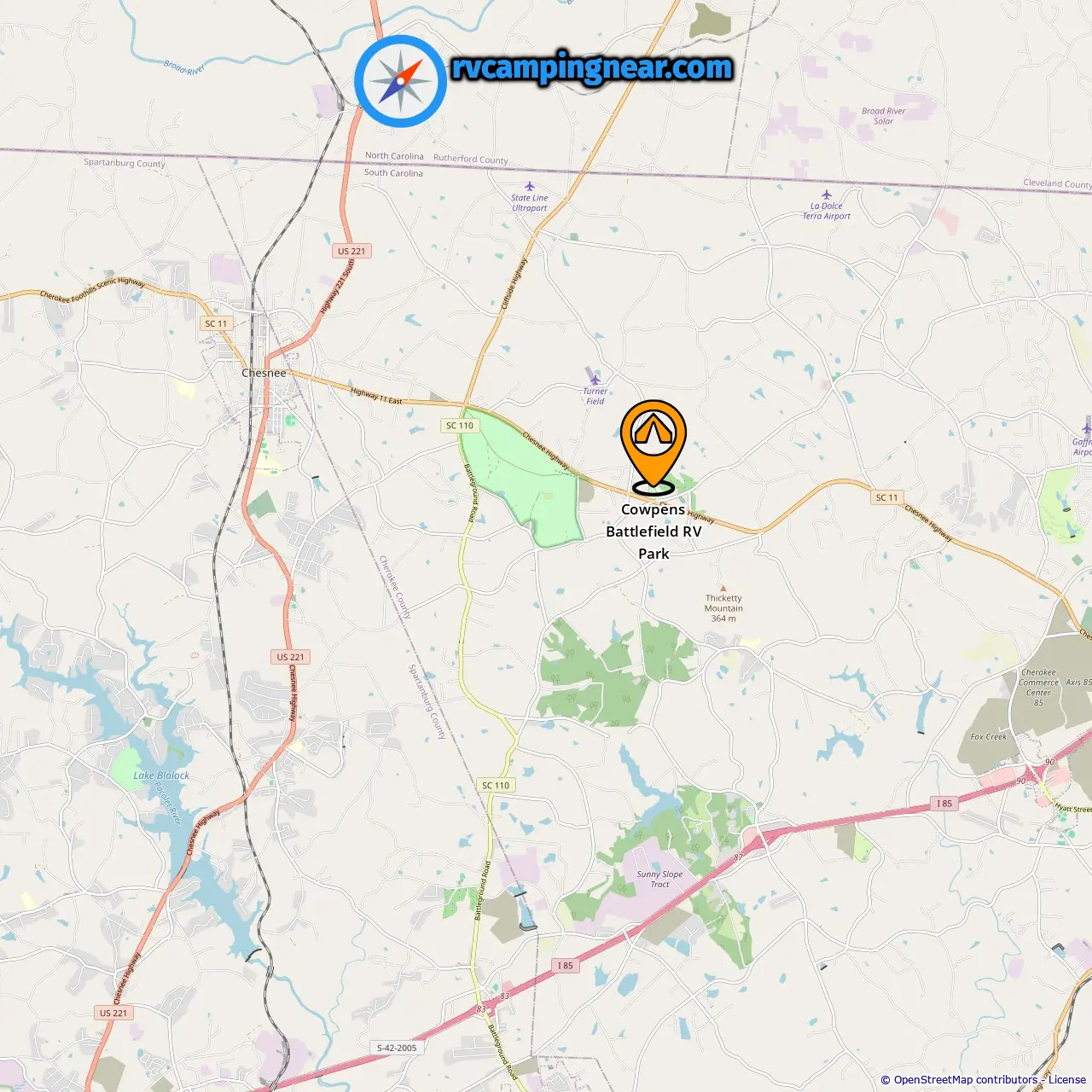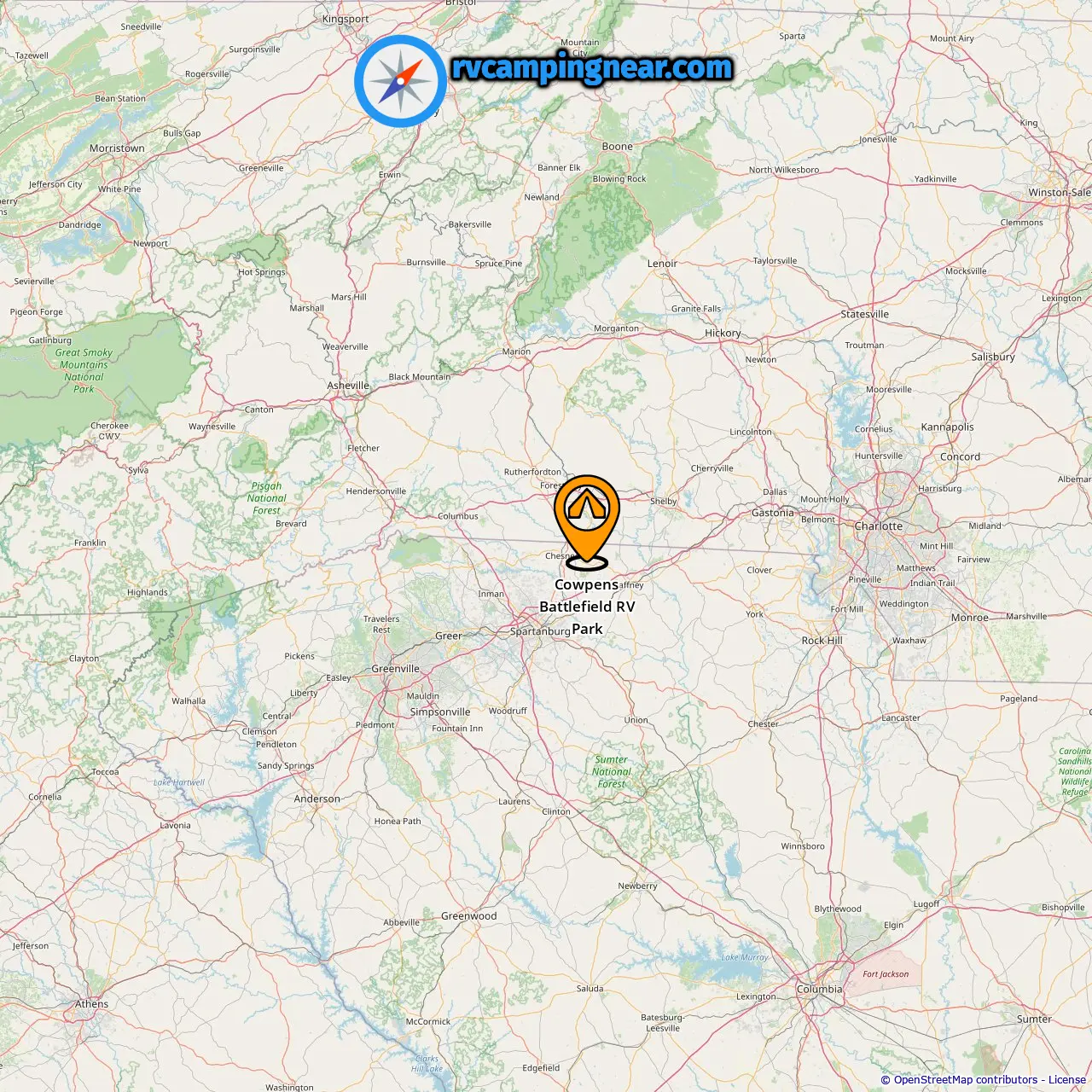 Localização de Cowpens Battlefield RV Park