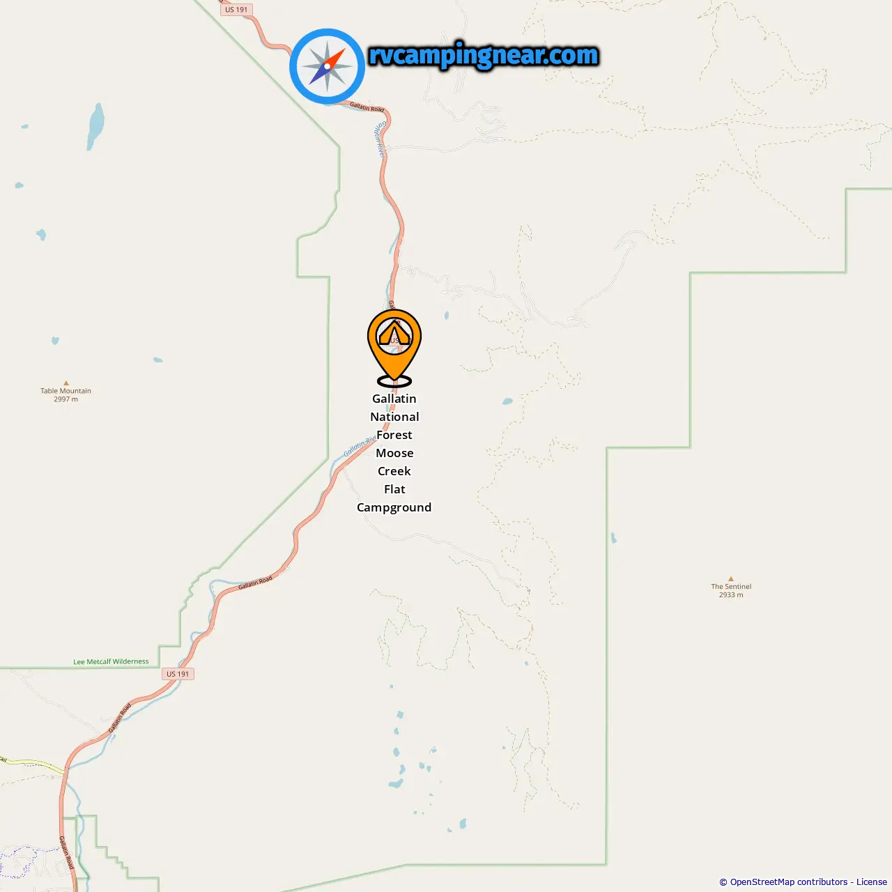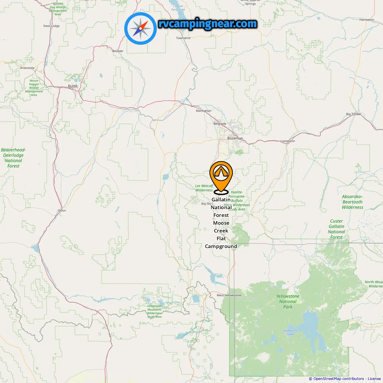 Localização de Gallatin National Forest Moose Creek Flat Campground