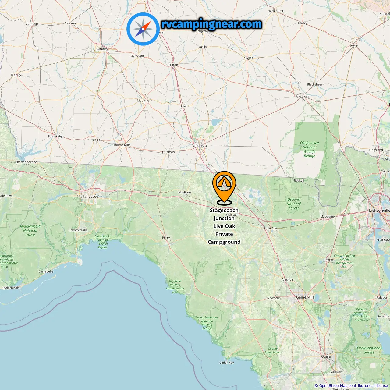 Localização de Stagecoach Junction Live Oak Private Campground