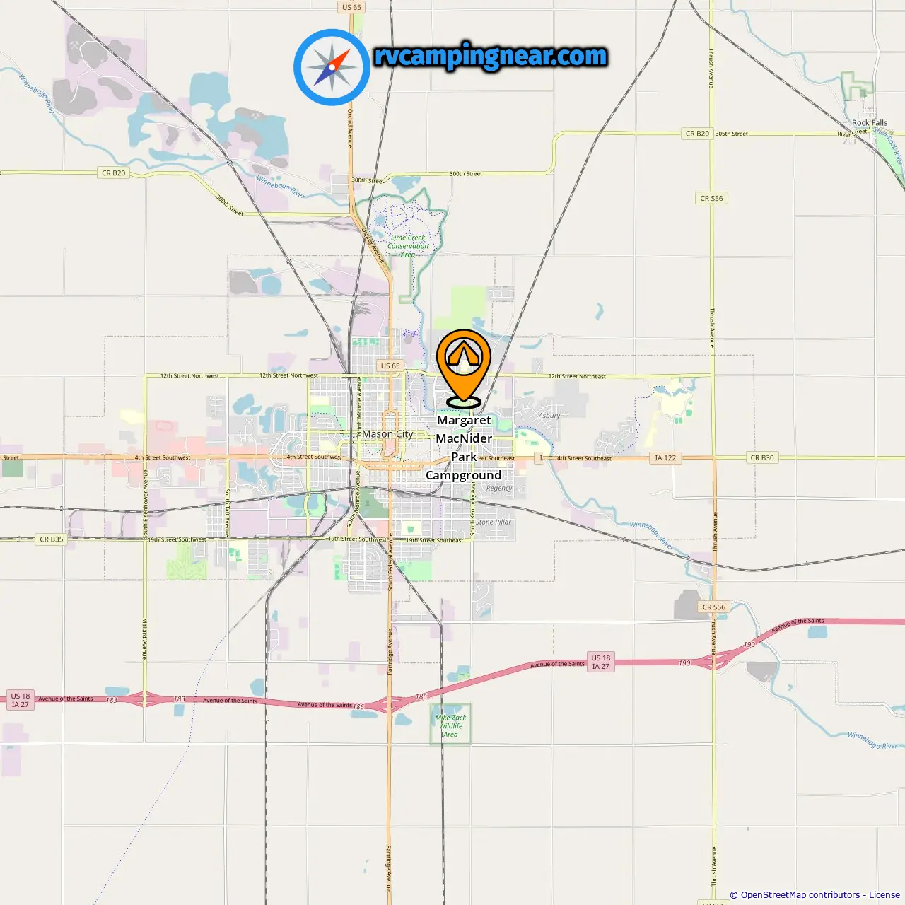 Distância do acampamento para Mason City: 1.52 mi