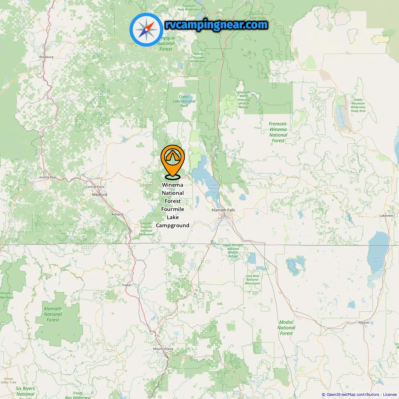 Localização de Winema National Forest Fourmile Lake Campground